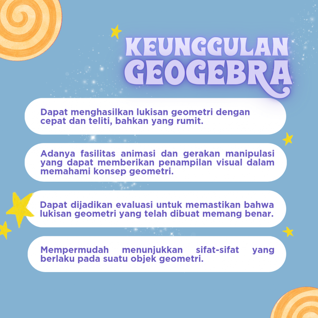 Perlu kita ketahui, sekarang ini sudah banyak aplikasi yang dapat mendukung proses pembelajaran matematika realistik yang melibatkan lingkungan pengalaman nyata dalam kehidupan sehari-hari, contohnya seperti aplikasi GeoGebra yang dapat menghasilkan lukisan geometri dengan teliti dan memberikan penampilan visual dalam mempelajari konsep geometri.