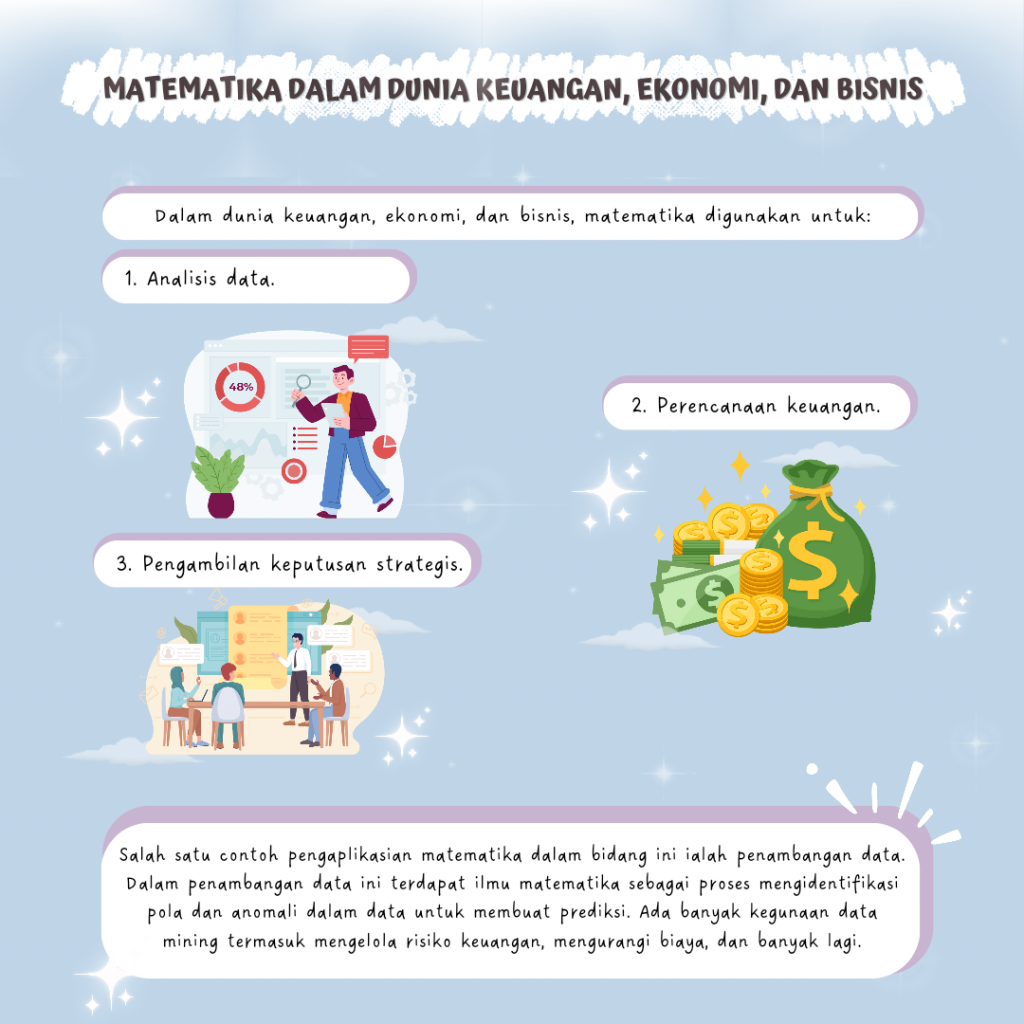 Matematika memiliki peran penting dalam dunia modern yang meluas ke berbagai bidang kehidupan, mulai dari ilmu pengetahuan, teknologi, ekonomi, dan bisnis.