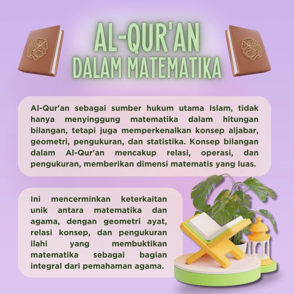Perlu kita ketahui bahwa matematika memiliki hubungan yang dalam dengan Islam, yang telah memperkaya keduanya sepanjang sejarah dengan saling mempengaruhi dan menginspirasi. Dalam tradisi Islam, matematika dianggap sebagai salah satu cabang ilmu pengetahuan yang paling penting dan dihormati, seiring dengan kedudukan tinggi yang diberikan pada ilmu pengetahuan secara umum. Matematika digunakan untuk mengeksplorasi dan memahami prinsip-prinsip yang mendasari alam semesta, sejalan dengan keyakinan akan ketuhanan dan keteraturan dalam penciptaan.